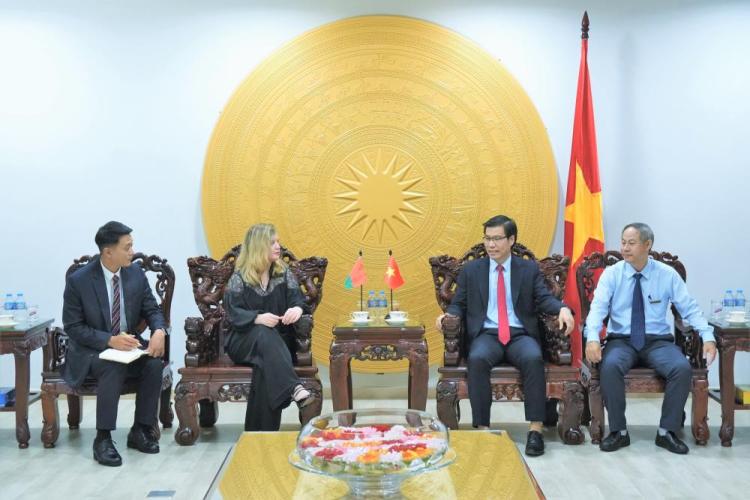 On April 29, 2025, the Colombian Ambassador to Vietnam, Ms. Camila Polo Flórez, visited Ton Duc Thang University (TDTU) to promote educational and research cooperation between TDTU and leading universities in Colombia. Attending the working session on behalf of TDTU was Dr. Tran Trong Dao, President of the University.